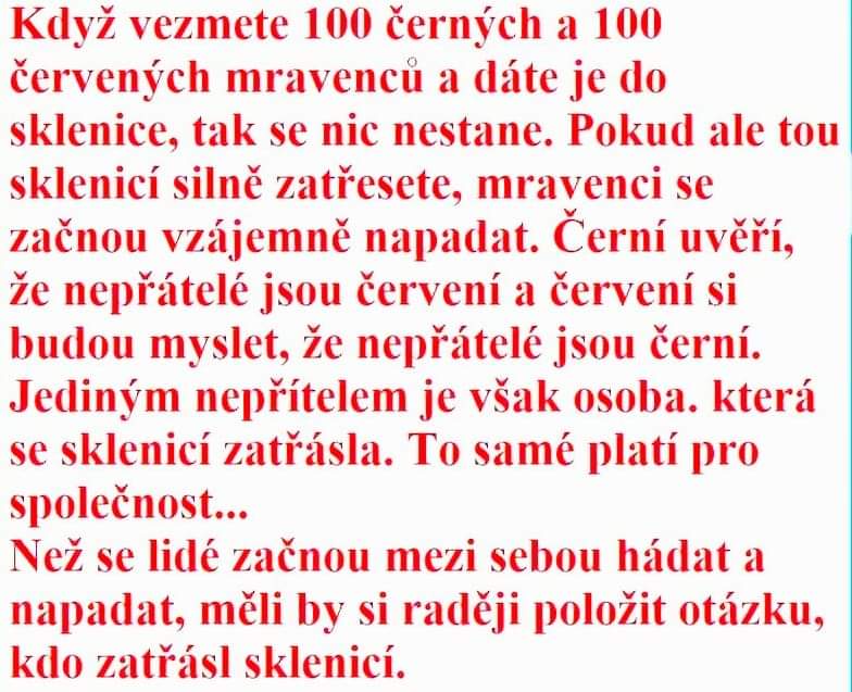Nevím, zda-li by se ti mravenci nepustili do sebe ihned, ale jinak je to poučné... *13842*