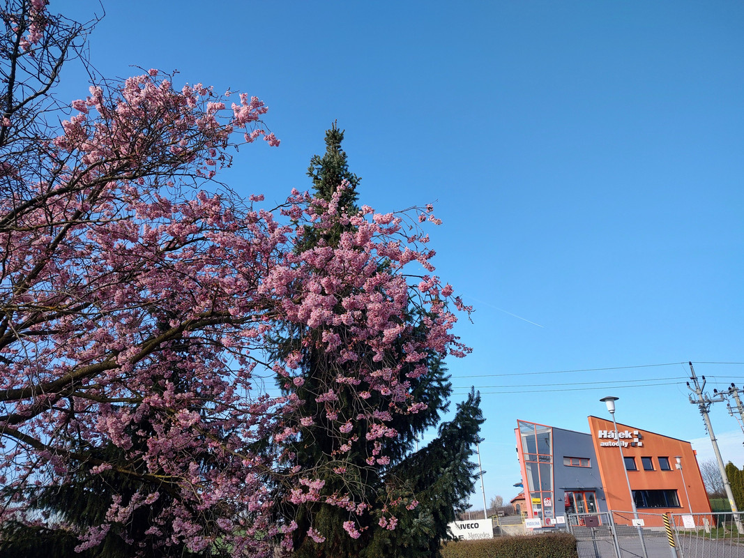 tak frčím, je tam krásně, jasno, plus deset, paráda, vezmu mobilos a udělám nějaké fotky, také jsem si nainstaloval rychloměr přes GPS, ani nevím, kolik mi ten nový motor frčí, mohl bych koupit přímo displey a zapojil bych ho přímo, ale stojí dva tisíce, tvl. to je piv :-))) ten v mobilu stačí :-) zatím ahoj a príma den