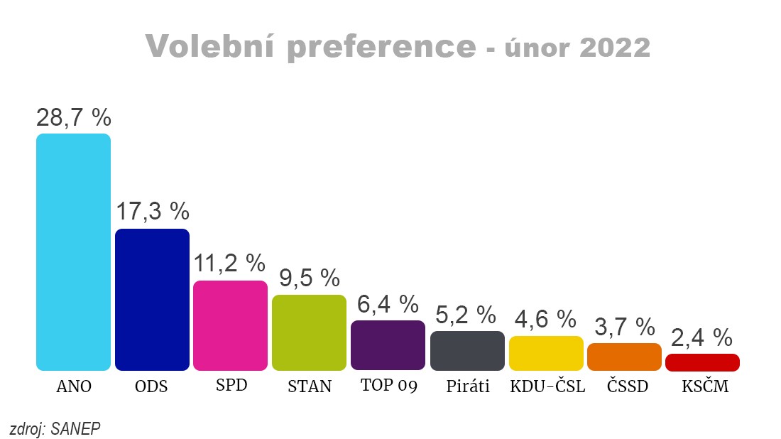 Volební průzkum únor 2022.