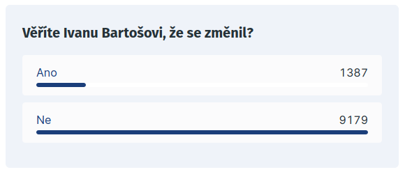 ono to nebude přes deset let, že Bartoši, neskutečně prolhaná svině, tajtrdlík polistopadových loupežníků, kdyby chtěli, zlikvidovali by ho na tomto ve svých médiích do týdne, nemají zájem, je to jejich hlavní oblbovací koníček ve volbách, oni už jsou provaření ...