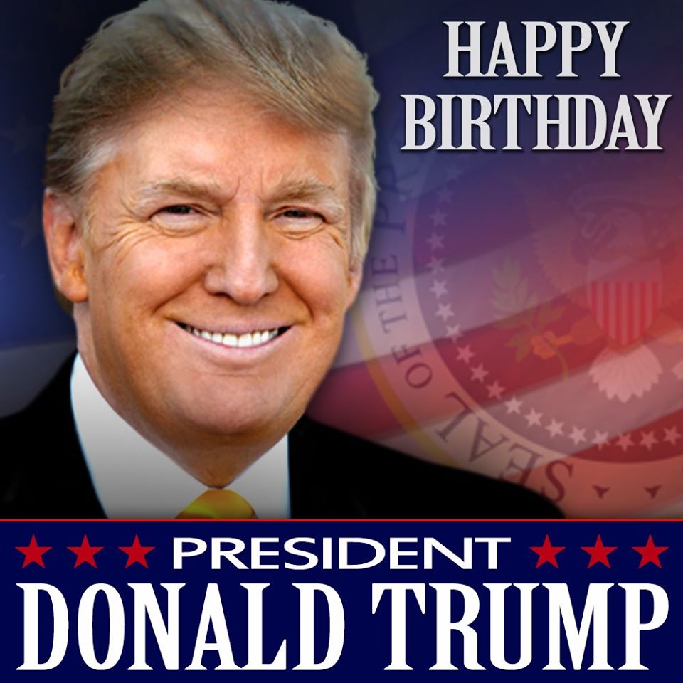 "Happy Birthday to one of the GREATEST Presidents in U.S. History, Donald J Trump! How fitting that one of America's greatest and most patriotic warriors was born on Flag Day!"