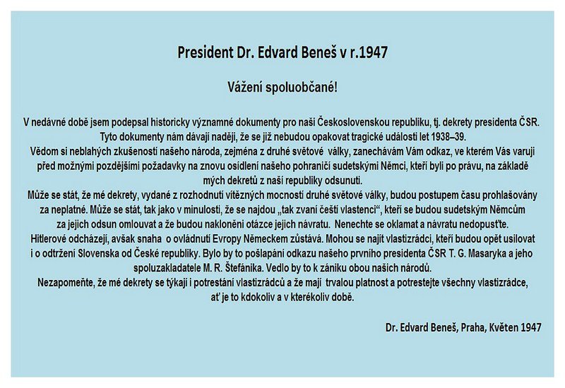 Pravost bych nezpochybňoval. Bylo by dobré dočíst do konce, co píše Beneš o odtržení Slovenska. Což je daleko větší průšvih, než návrat několika potomků sudetských Němců-