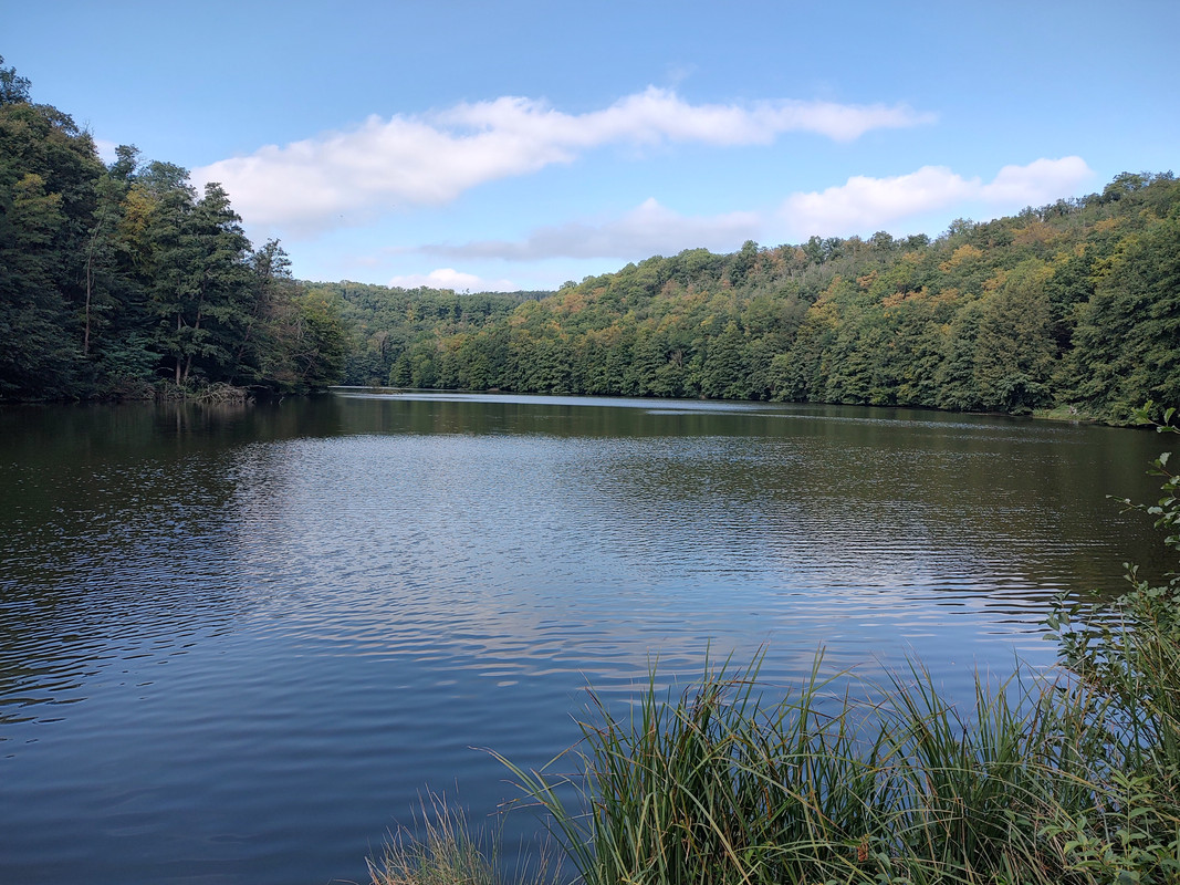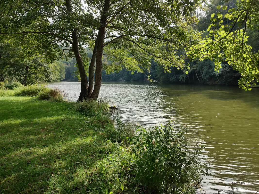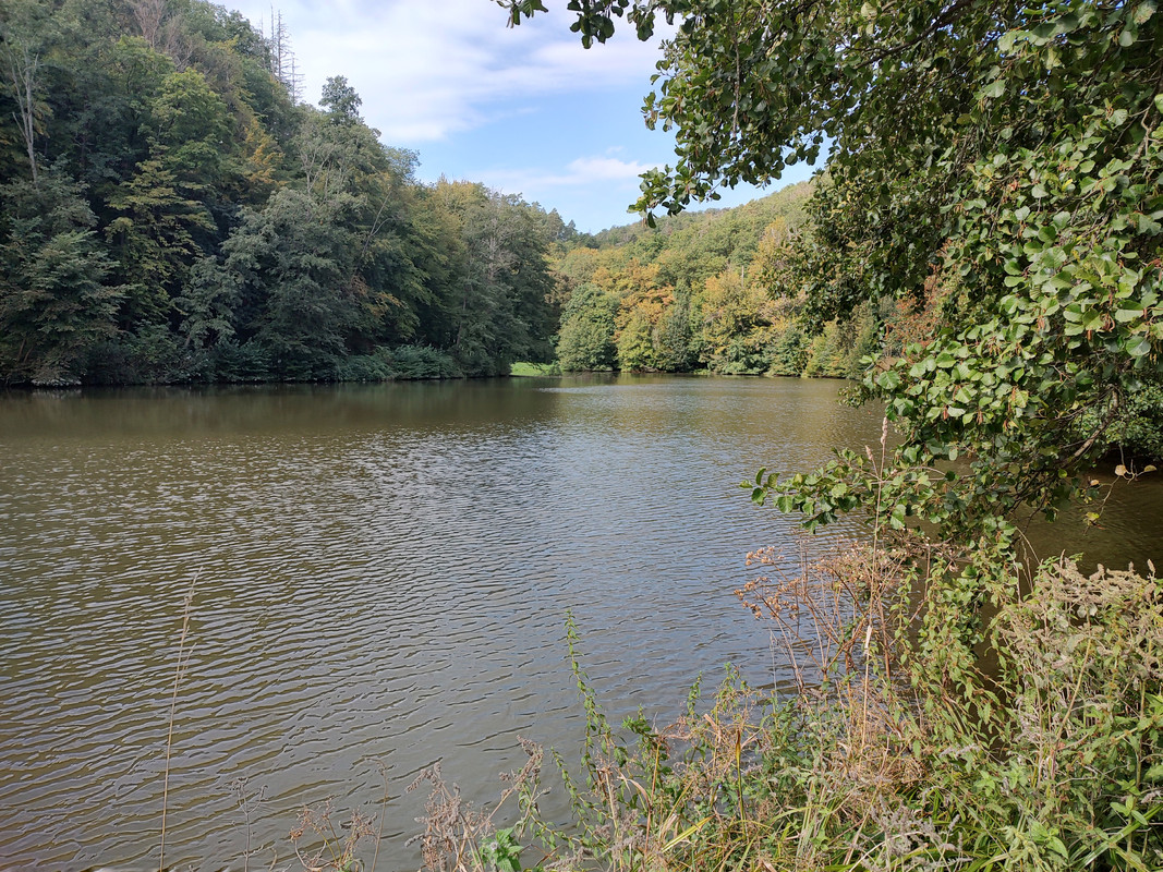 už je tam cítit podzim, ale je tam dnes moc krásně, toto je ten první rybník ...
